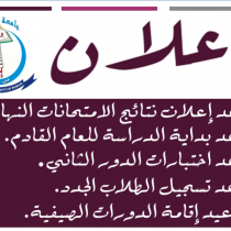 وبمناسبة انتهاء الامتحانات وبدء الإجازة السنوية نعلن لجميع الطلاب الأمور الآتية :
